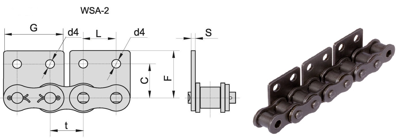 Схема цепи приводной роликовой с аттачментами тип WSA-2