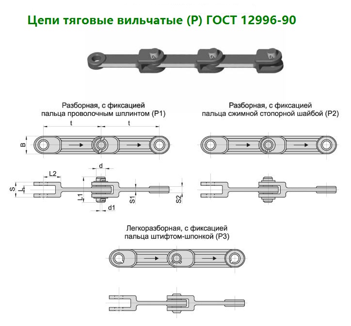 ООО "Агропромцепи" изготавливает вильчатые тяговые цепи разных типоразмеров. При этом они делятся на три вида:
